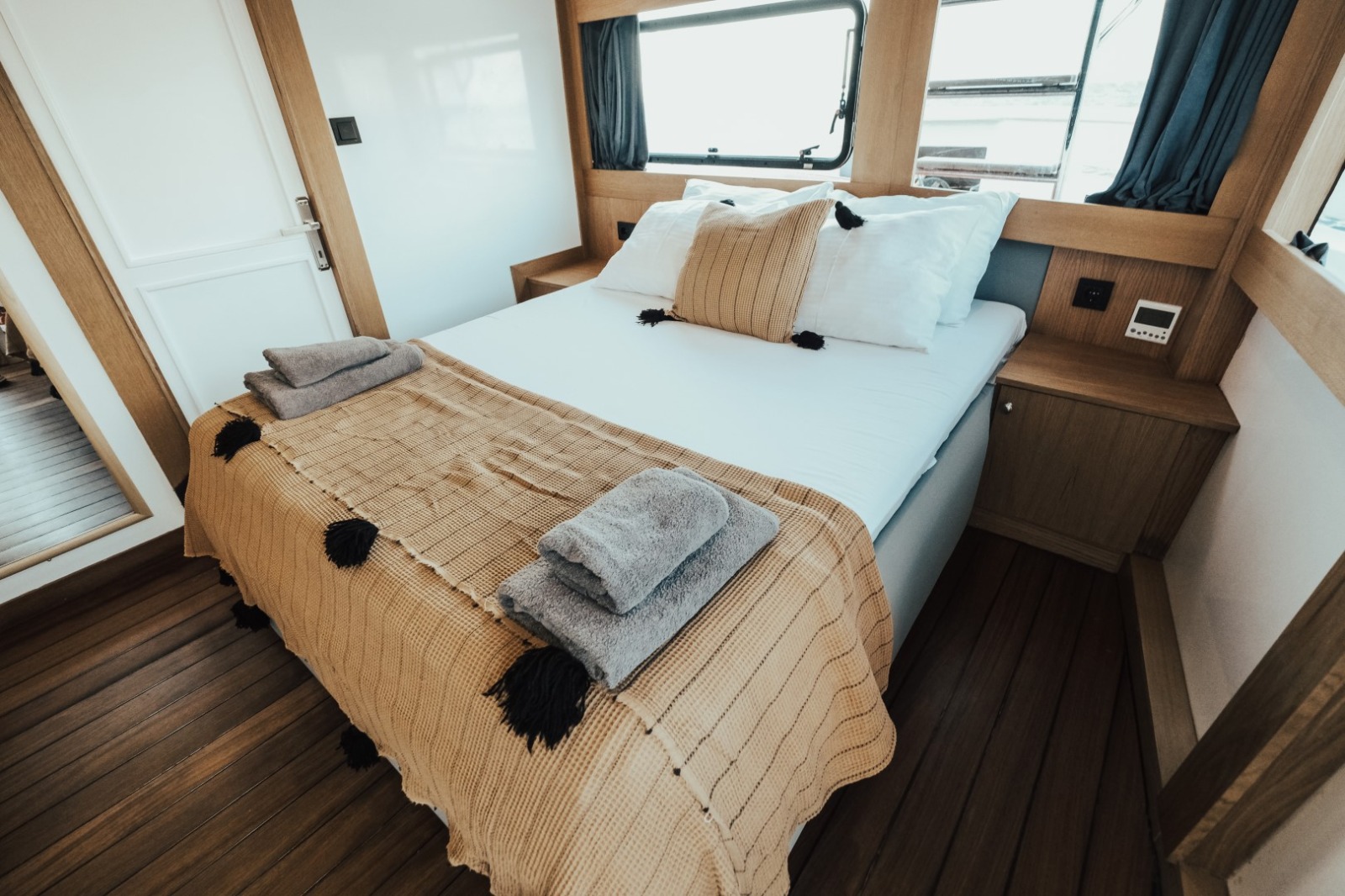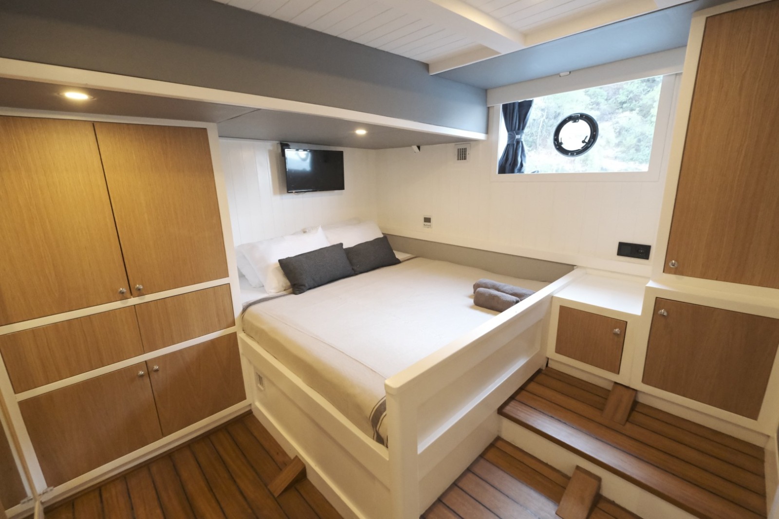 Nayk 1 trol teknemiz toplam 4 kabine sahiptir. Bunlardan ikisi master kabin, ikisi ise double kabin olarak tasarlanmıştır. 3 kabin ön tarafta yer alır ve salondan aşağıya inilerek ulaşılabilir. Diğer kabin ise üst güvertenin sancak tarafında olup ayrı bir girişi vardır. Her kabinde TV, klima, müzik sistemi, özel duşakabin, banyo ve tuvalet bulunmaktadır.