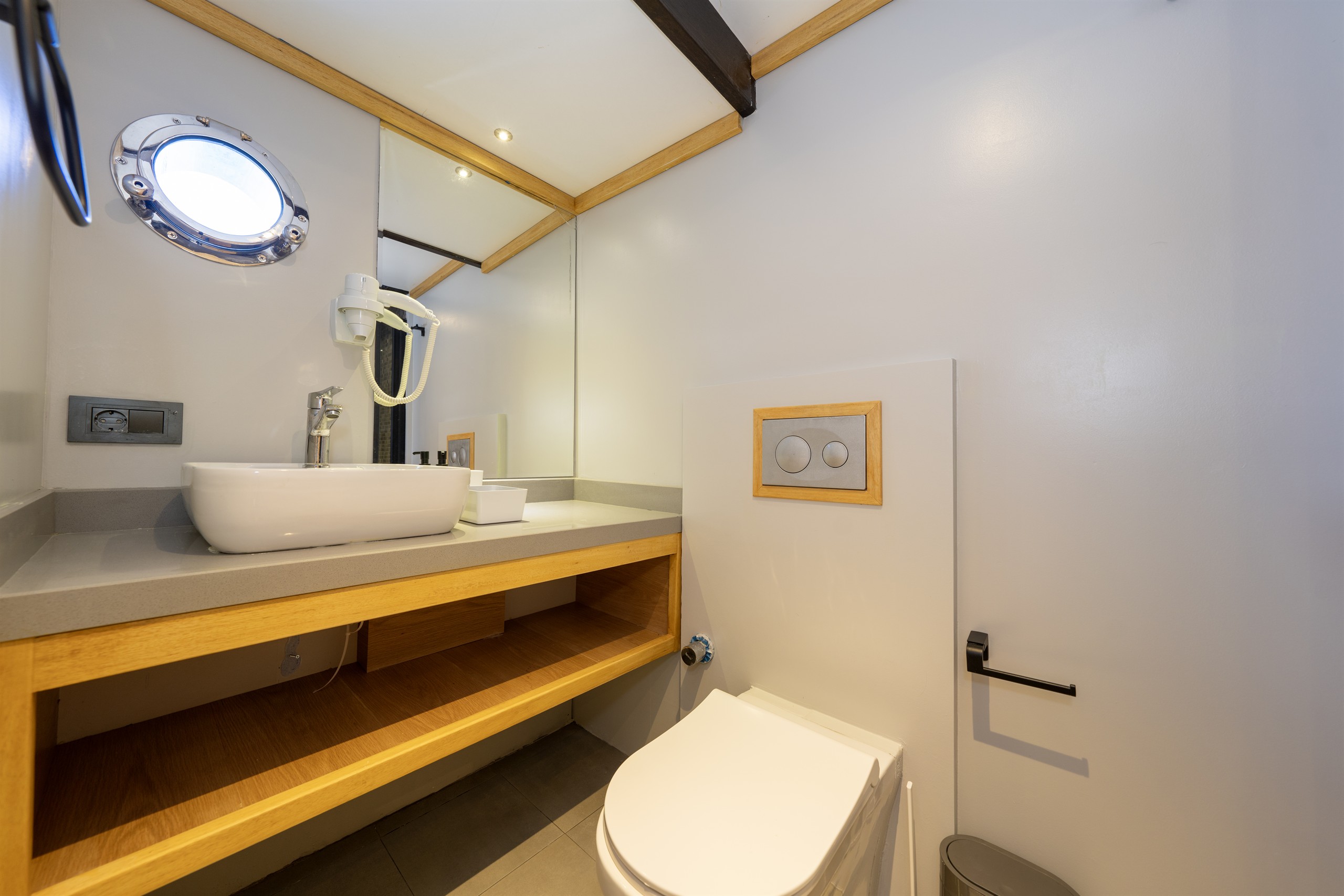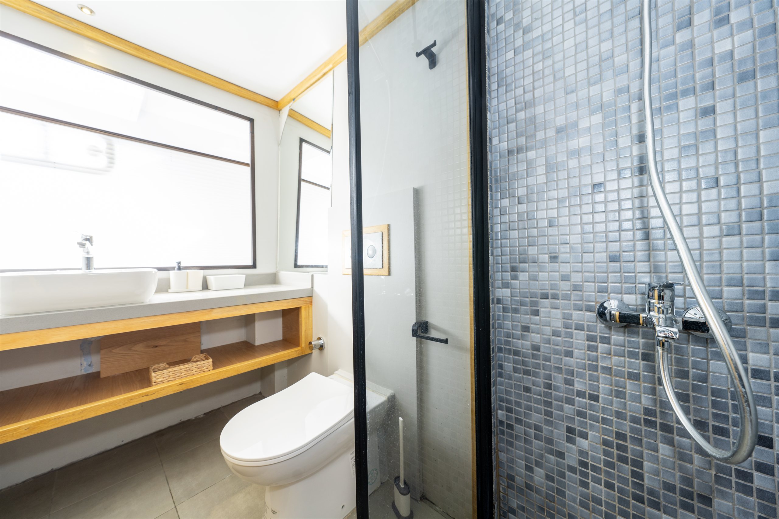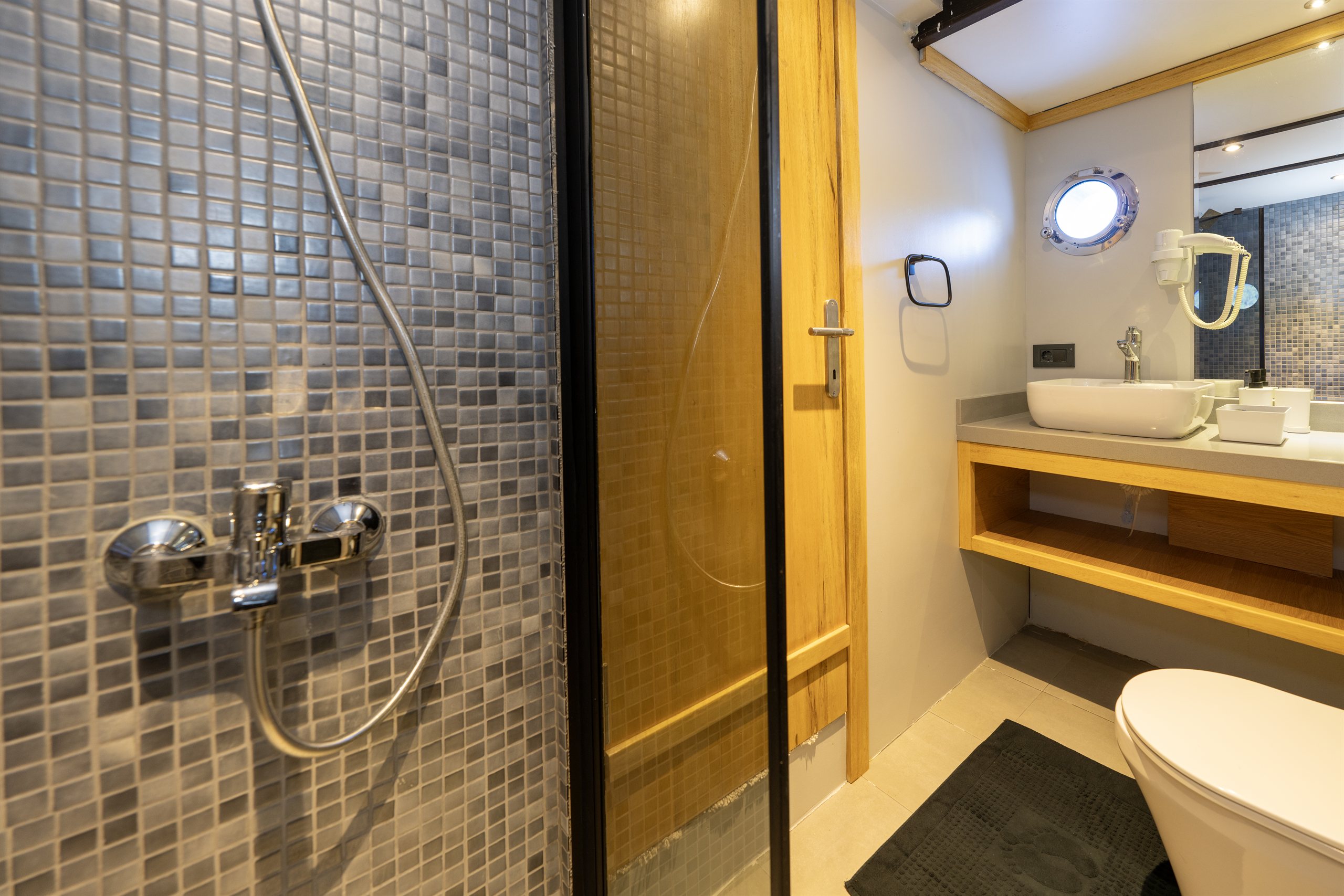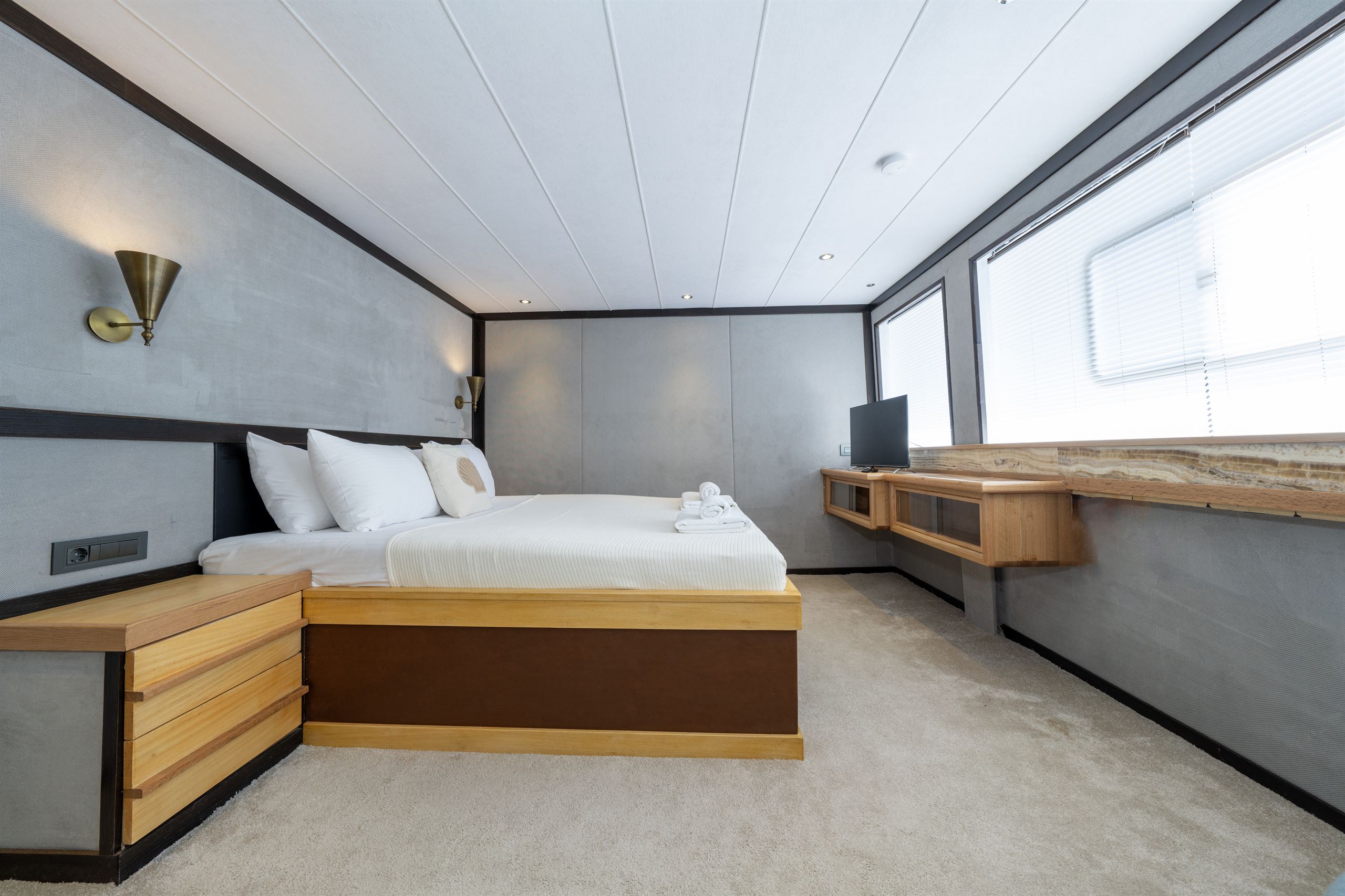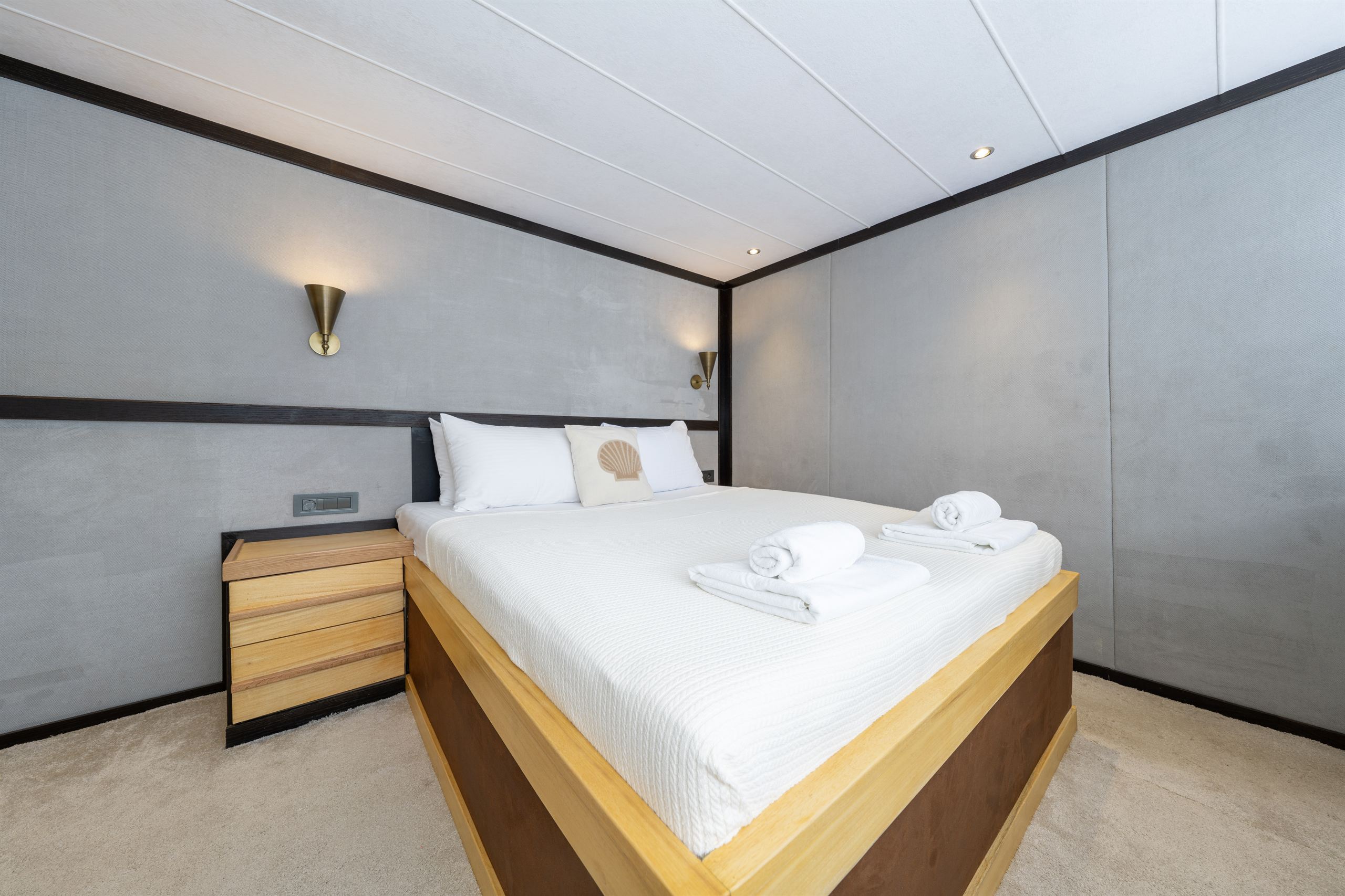 Yatımız her detayı özenle düşünülmüş zarif bir iç tasarıma sahiptir. Ana güvertede bulunan geniş ve ferah Master kabin, ayrıcalıklı bir konaklama deneyimi sunar. Ayrıca, 4 çift kişilik ve 2 ikiz yataklı kabin, misafirlerinizin konforunu ve rahatlığını en üst düzeye çıkarır. Her kabinde özel banyo duşakabin ve tuvalet bulunmaktadır.