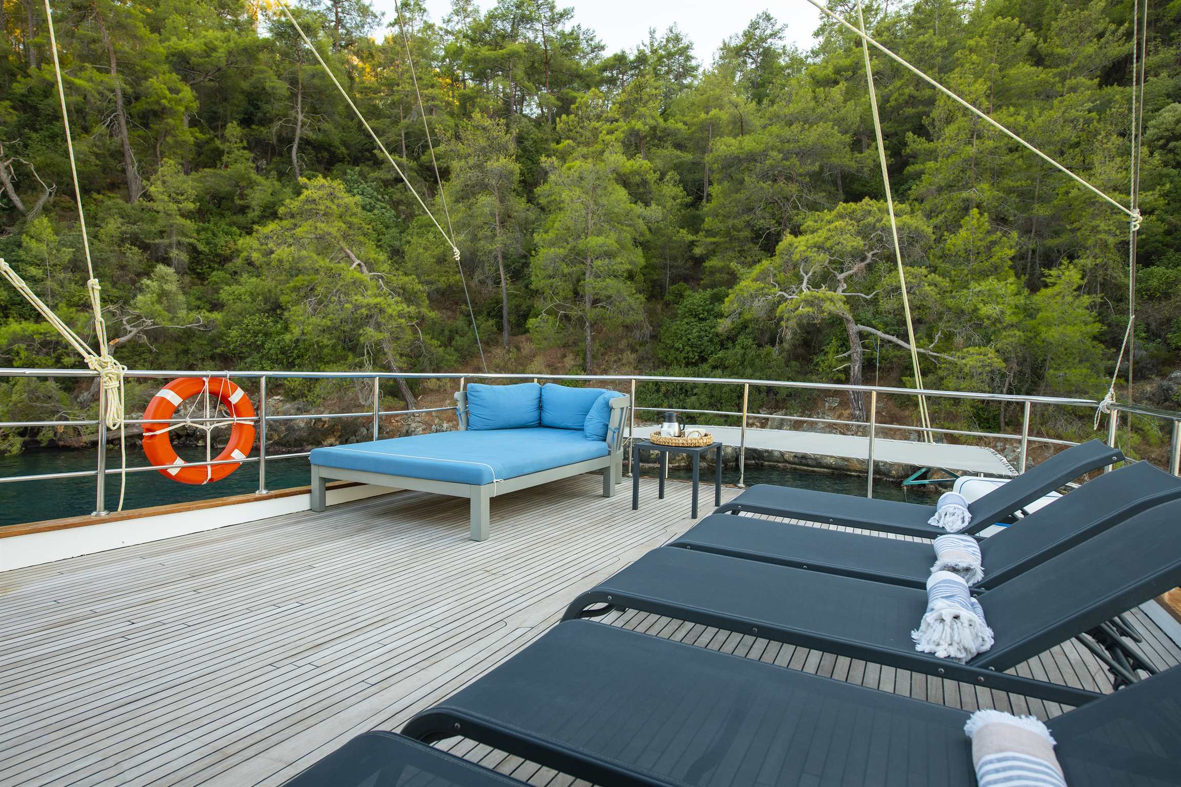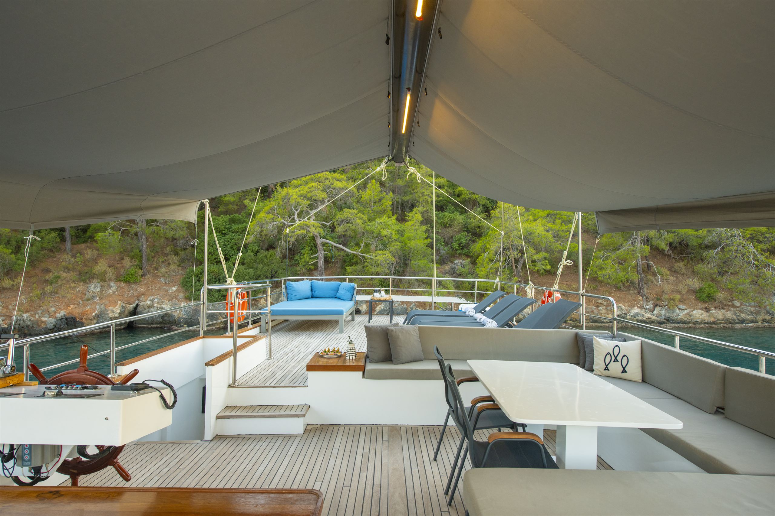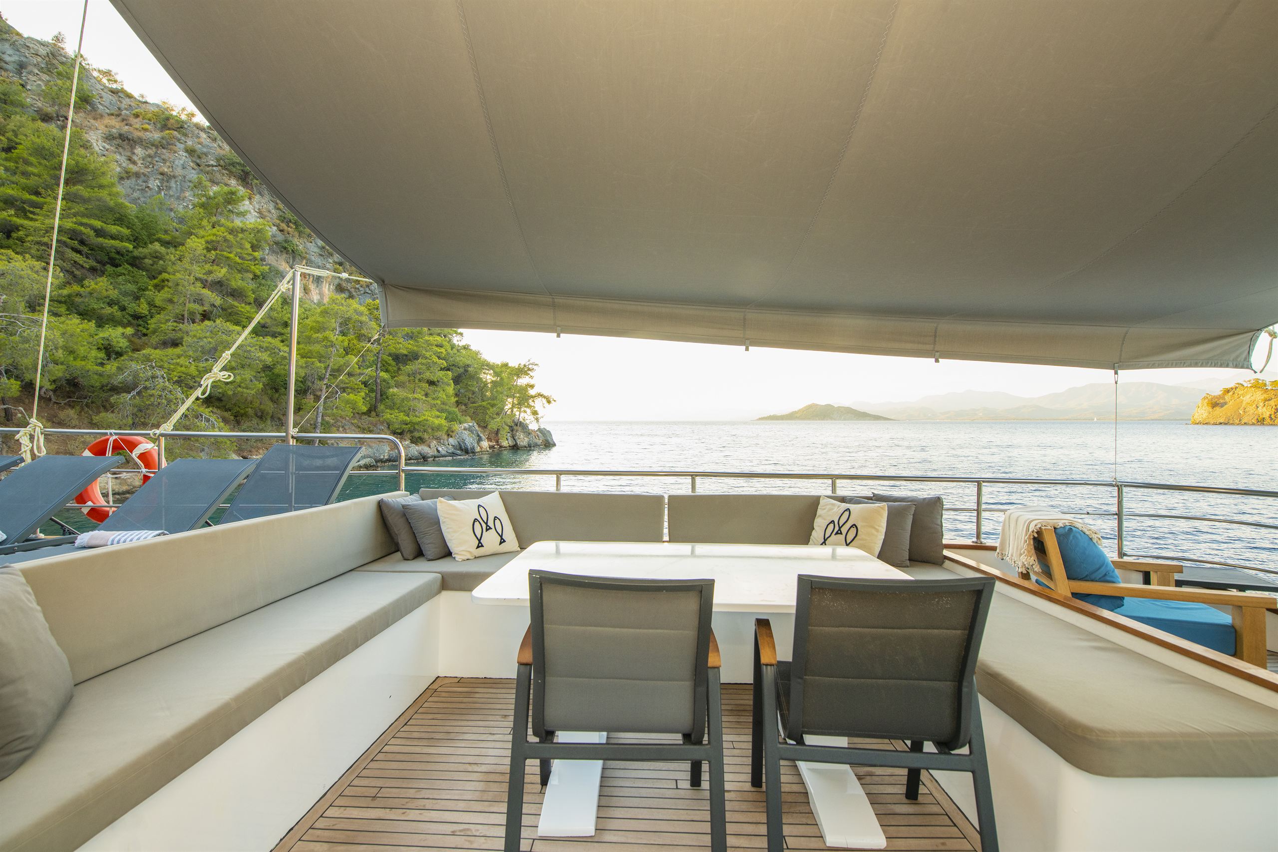- Diğer EkipmanlarŞnorkel ekipmanları, Balık tutma takımı, Güneş tenteleri, Güneşlenme yatağı, Güverte duşu, Deniz merdiveni