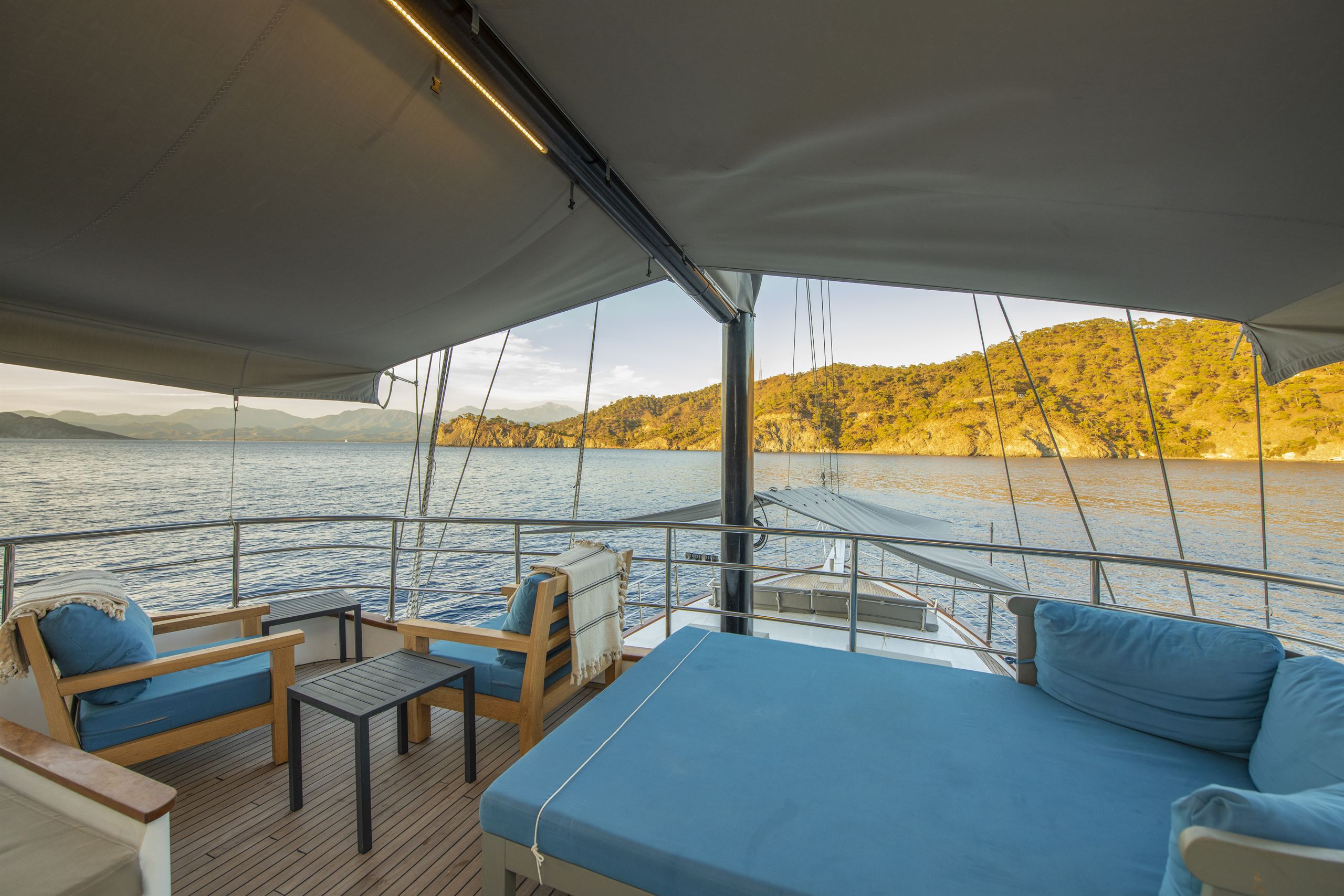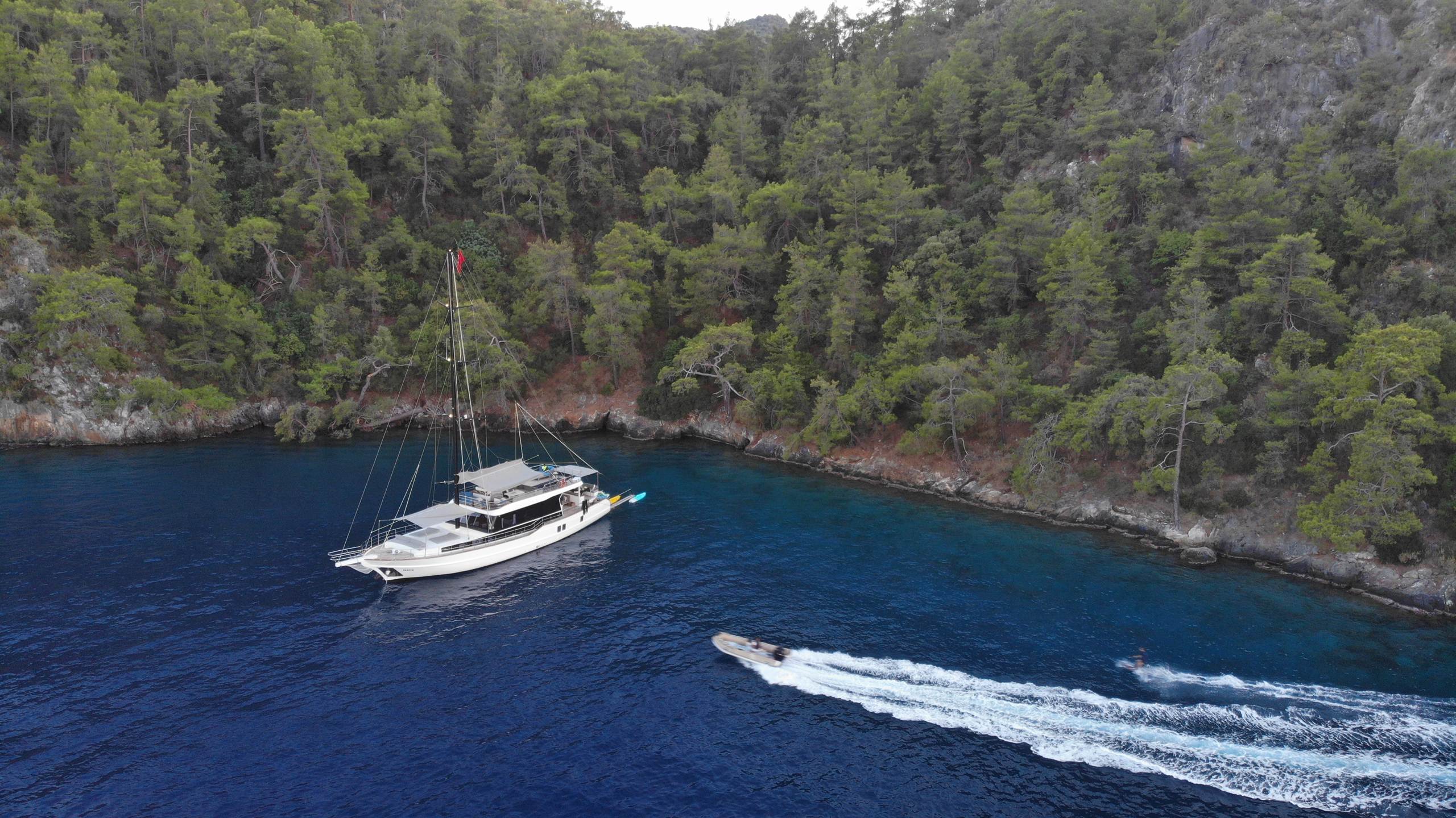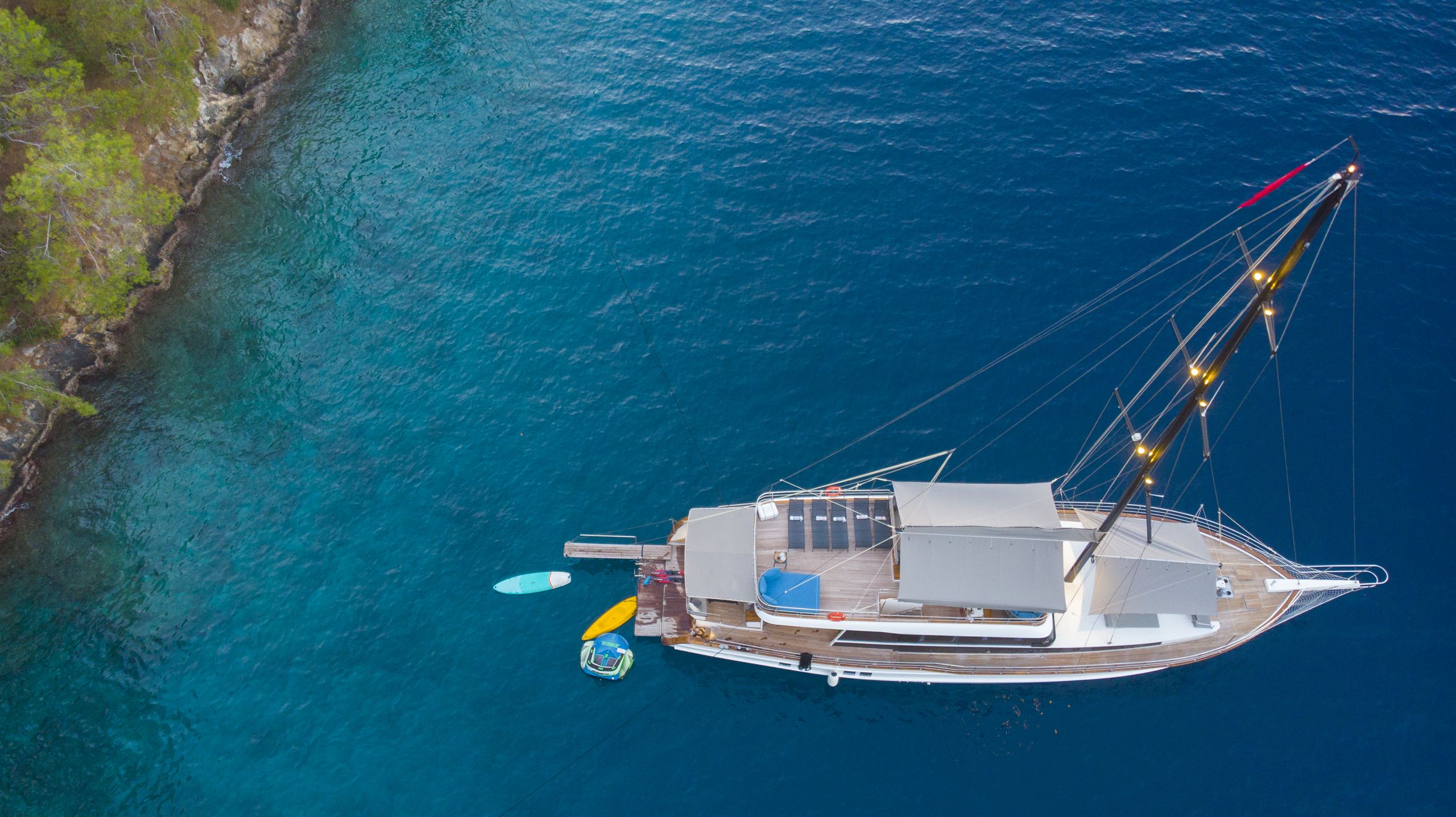 - Diğer EkipmanlarŞnorkel ekipmanları, Balık tutma takımı, Güneş tenteleri, Güneşlenme yatağı, Güverte duşu, Deniz merdiveni